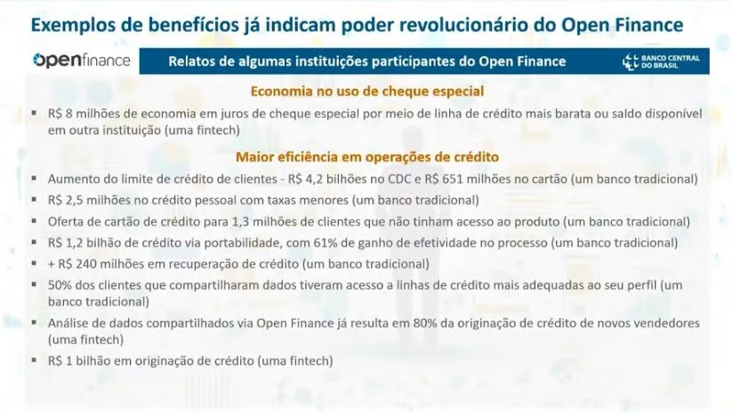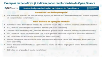 Dentre elas, em análise da coletiva feita nas redes, temos o que ele ampliou a fase obrigatória de compartilhamento de dados para todas as Instituições Financeiras (IFs) com mais de 5 milhões de clientes, cobrindo 95% dos clientes do Sistema Financeiro Nacional.